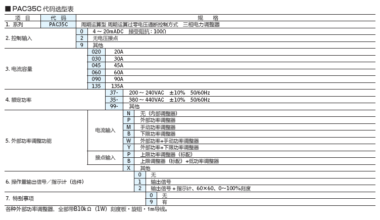 控制方式可從3種類中進行選擇。 電流容量20,30,45,60,90,135A 的6 種類型。 電源電壓200 ~ 240V 以及380 ~ 440V 的2 種類型。