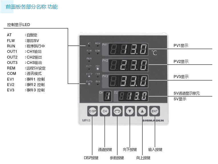 ♦ 區(qū)域控制可以實現(xiàn)獨立3通道輸入、3通道設(shè)定。 ♦ CH2?CH3 的設(shè)定值可跟蹤 CH1 (可設(shè)定偏移) SV 設(shè)定 ♦ CH2?CH3 的PV輸入值可跟蹤C(jī)H1 的PV輸入 ♦ 采用抗超調(diào)專家PID ♦ 豐富的選件功能:程序功能, 事件功能, 遠(yuǎn)程?DI 輸入, 通訊功能(RS‐232C 或 RS‐485)