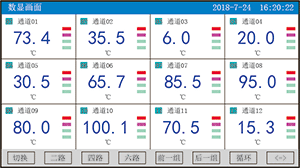 數(shù)顯畫(huà)面:顯示實(shí)時(shí)測(cè)量值,同時(shí)還可顯示通道位號(hào)、工程單位及報(bào)警狀態(tài)等信息 歷史畫(huà)面:可向前或向后查看保存在內(nèi)存中的歷史數(shù)據(jù)