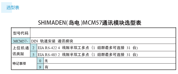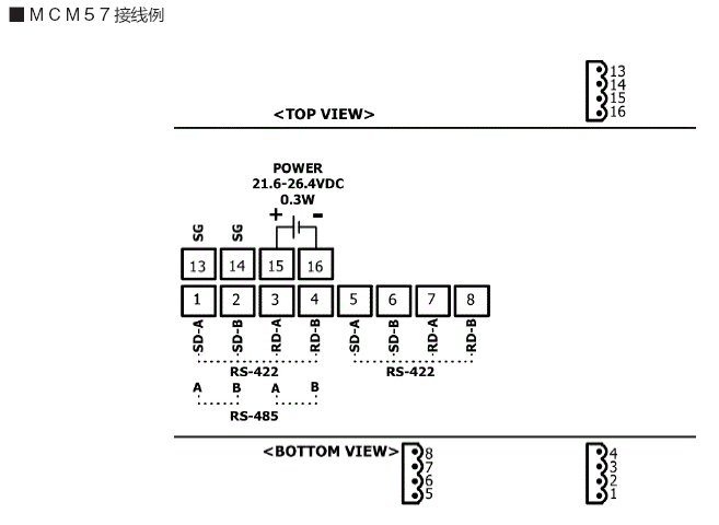 MCM57通訊模塊支持:RS-422 4線半雙工多點(1組最多可連接 31臺),RS-485 2線半雙工多點(1組最多可連接 31臺)